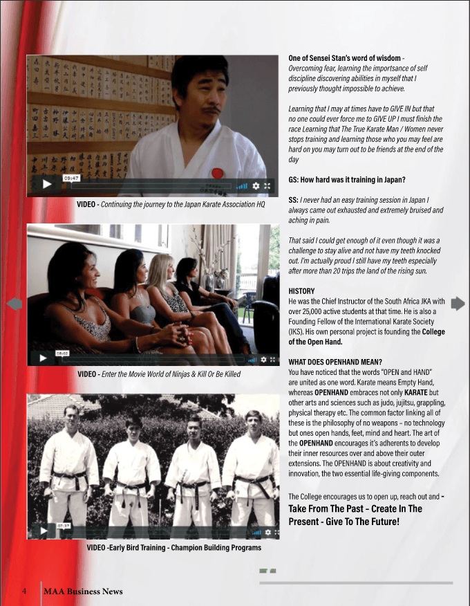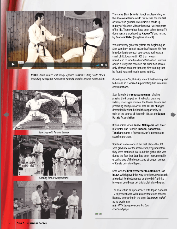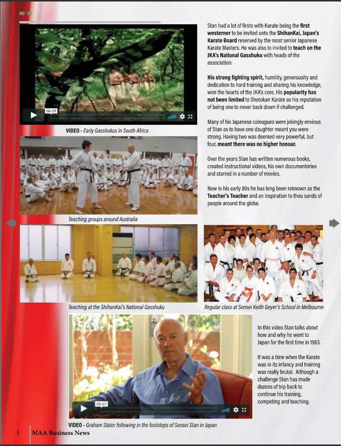 Please note you can read the overview of Sense Stan's life in Martial Arts and watch the videos of never before seen footage in the digital mag version - see free download